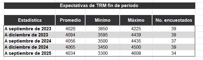 Ante esto, el mercado espera que, para el fin de este mes, en promedio, el dólar en Colombia se ubique en $4.020, con un mínimo de $3.850 y un máximo $4.225.