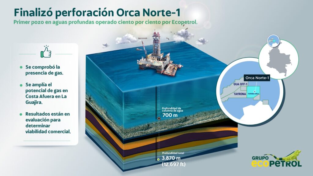 «El pozo Orca Norte–1 comprobó la presencia de dos acumulaciones de gas en reservorios diferentes al descubrimiento Orca-1, lo cual activa una reevaluación del proyecto original, a la vez que amplía el potencial de gas de La Guajira en el offshore.